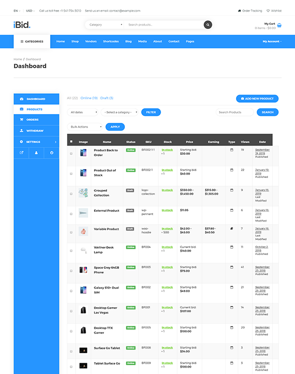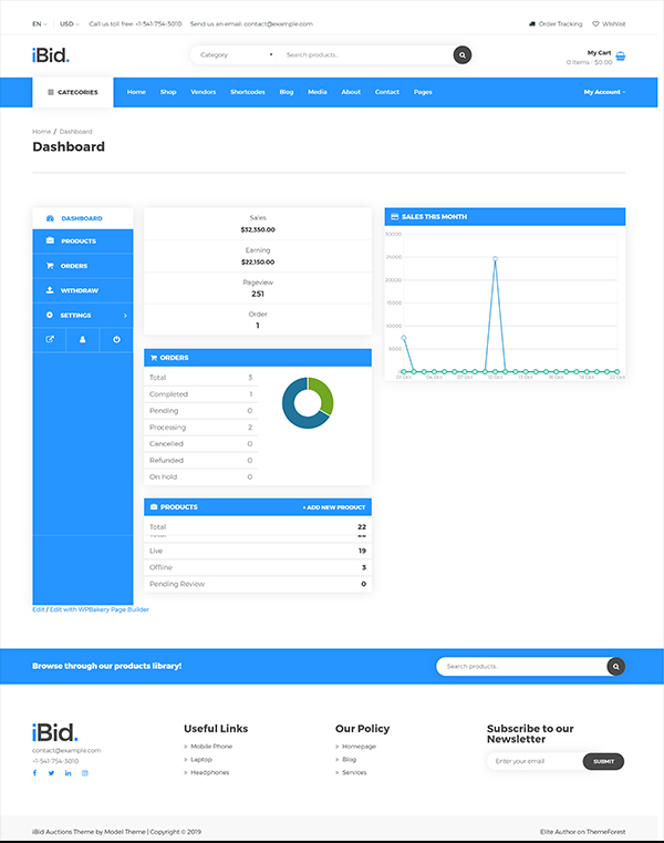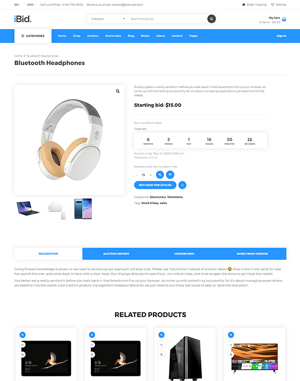 Multi Vendor Auctions WooCommerce Theme is a great design idea for auction websites and online marketplaces.